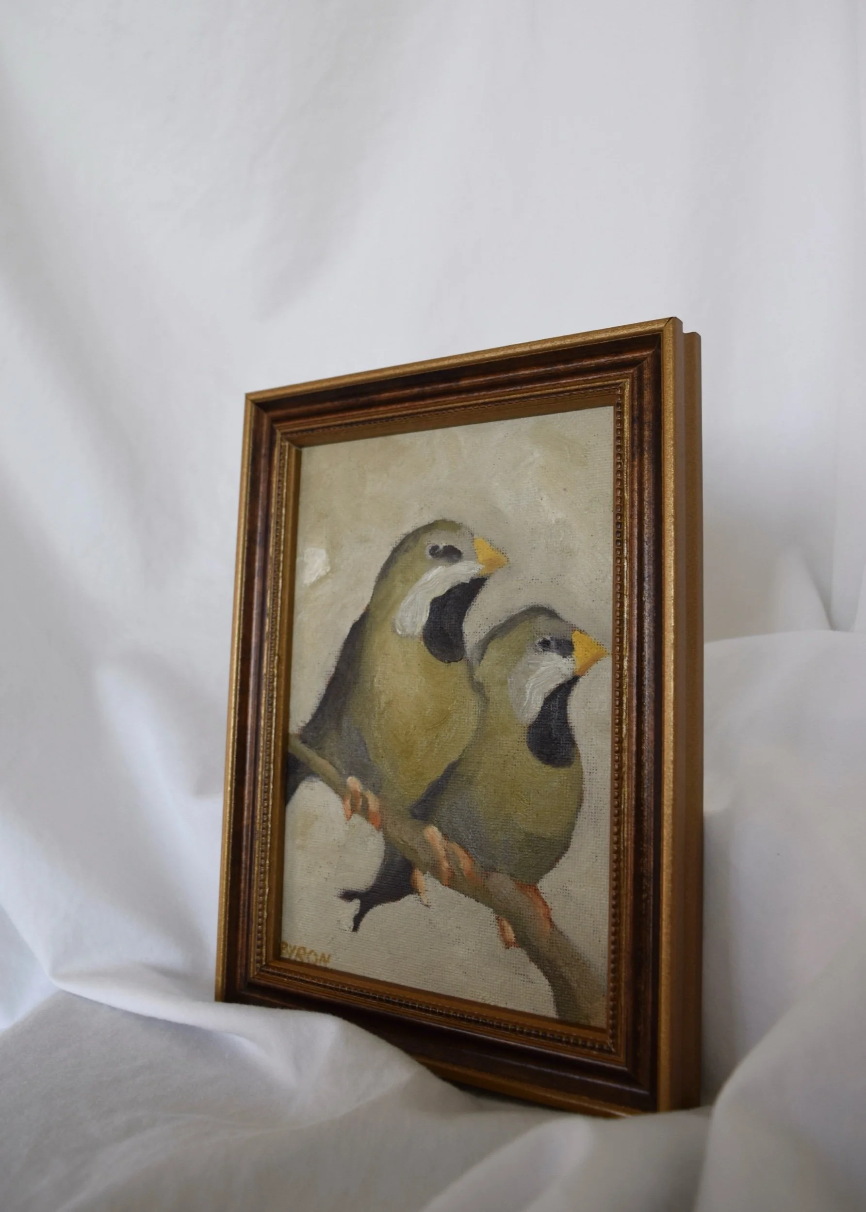 Two small finches, with all the space in the world, yet always choosing the space next to the other. Made to be together.