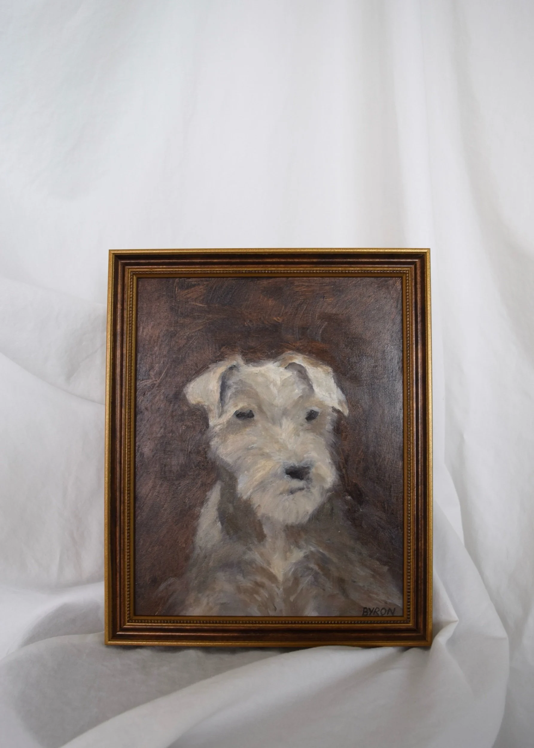 Fine Art › Schnauzer - 8x10 Image 1 of 2 Image 2 of 2 Schnauzer - 8x10 $120.00 Original oil painting on 8x10in panel in 3/4in wood frame. Signed Byron in lower corner. Add To Cart Added! Original oil painting on 8x10in panel in 3/4in wood frame. Signed Byron in lower corner.